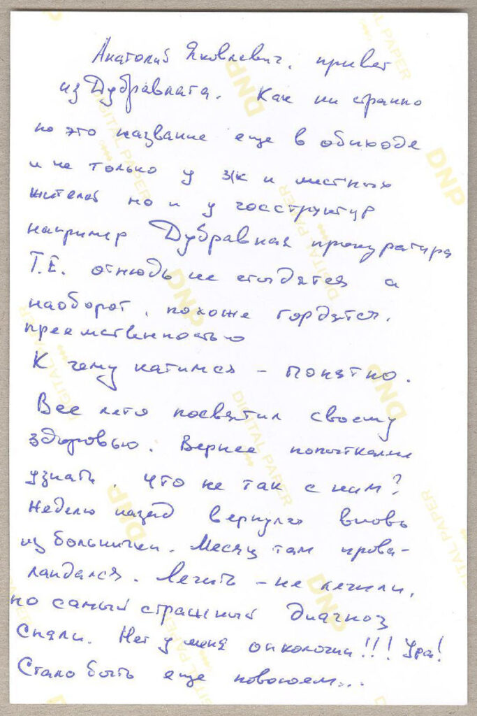 больничке. Бодр и передаёт приветы из Дубравлага: